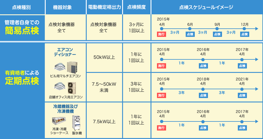 定期点検(1回/1年、1回/3年)空調機器12000円~ 冷凍機器14000円~